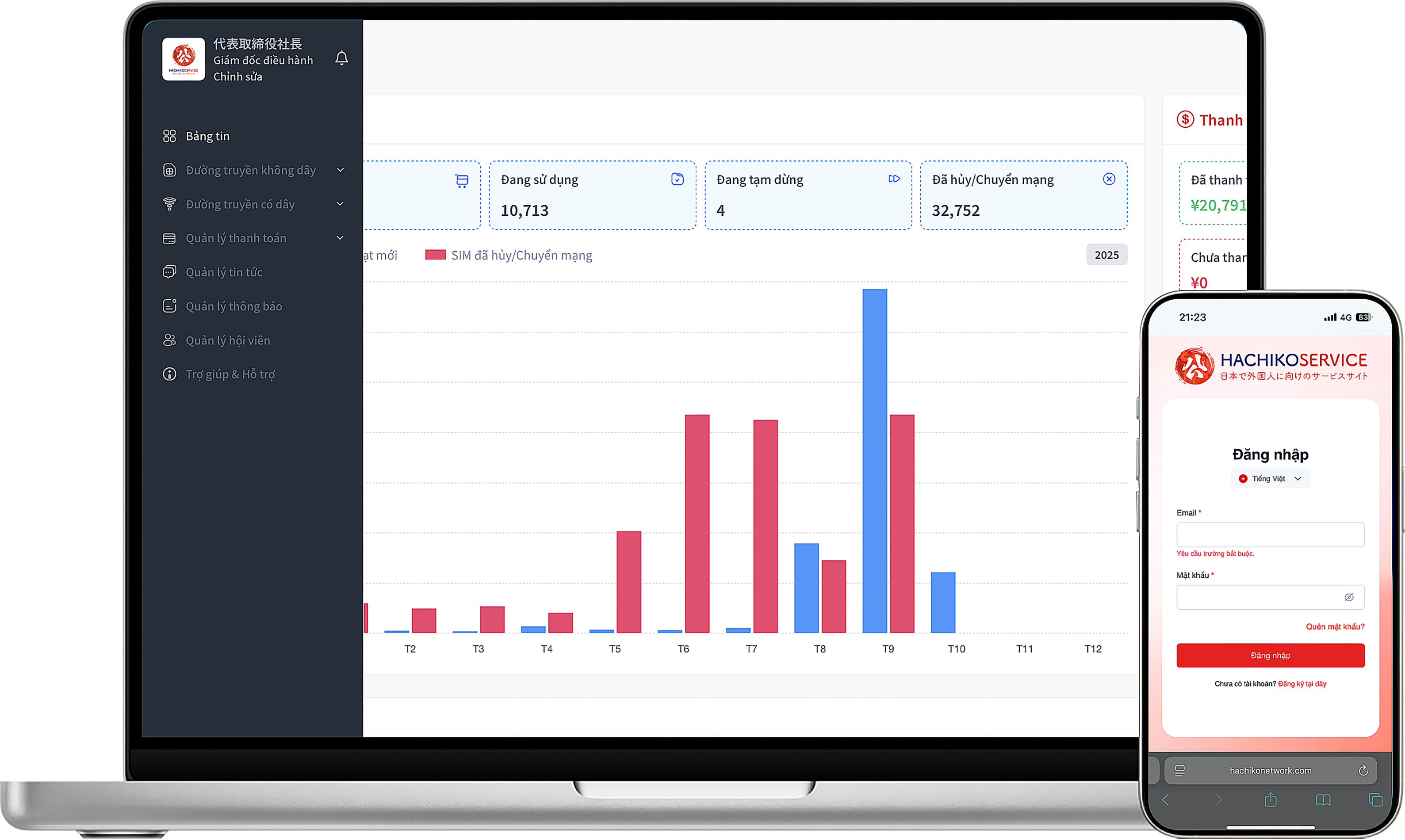 Cung cấp dịch vụ kết nối internet tại Nhật Bản như: Sim nghe gọi; Sim data; Wifi cố định; Các sản phẩm viễn thông chuyên dụng khác.